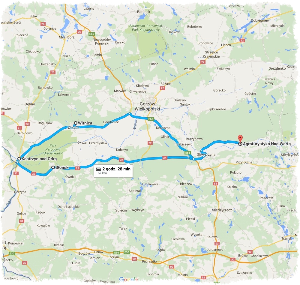 Cała wycieczka nie jest długa. Samochodem w tą i z powrotem można obrócić w 2 godziny z małym hakiem. Jak komuś mało to można po drodze objechać okoliczne wioski lub zajechać do Santoka – gdzie Noteć łączy się z Wartą.